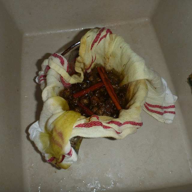 There you go! Nice golden brown cinnamony oil...a herbal infused massage oil!
